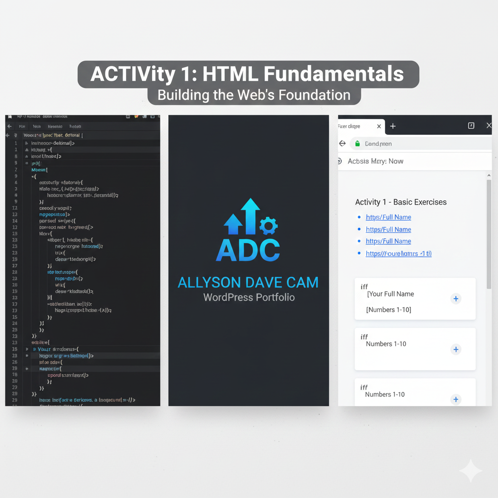 This first activity was our entry point into web development. It was all about learning the absolute basics of HTML (HyperText Markup Language)βthe code used to build and structure every single webpage you see online. Think of HTML like the skeleton of a website.