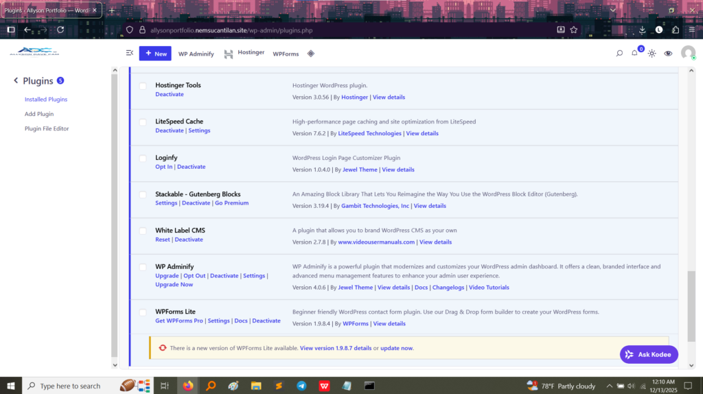 This image confirms that the “White Label CMS” plugin is installed and ready to be configured. This proves the ability to introduce branding customization tools.
